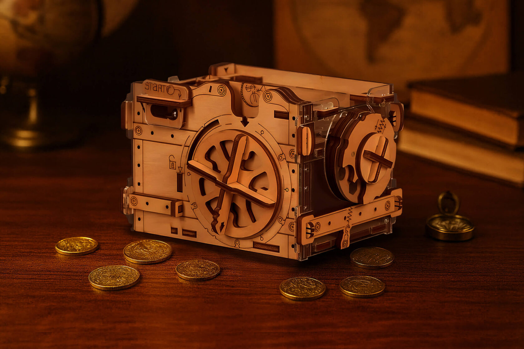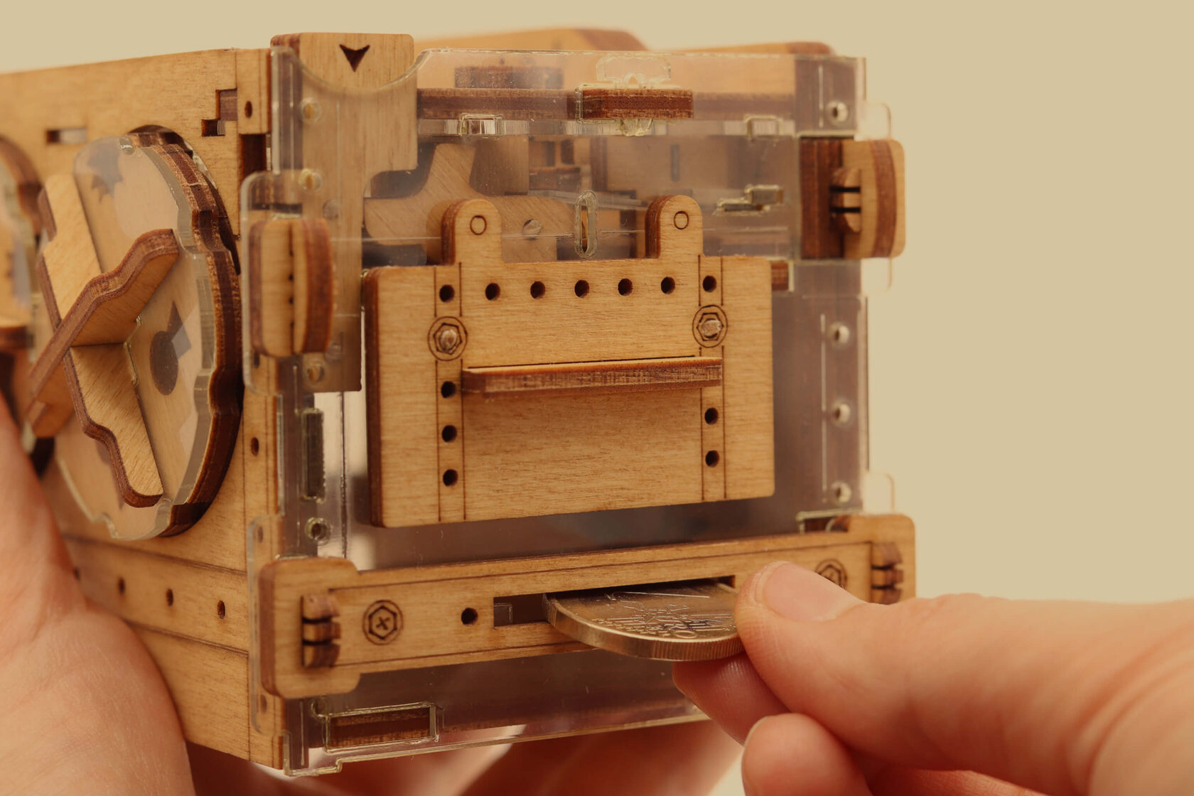 УРОВЕНЬ СЛОЖНОСТИ: 5/10ИНСТРУКЦИИ И ПОДСКАЗКИПоложите монету — и игра началась! Деревянная головоломка