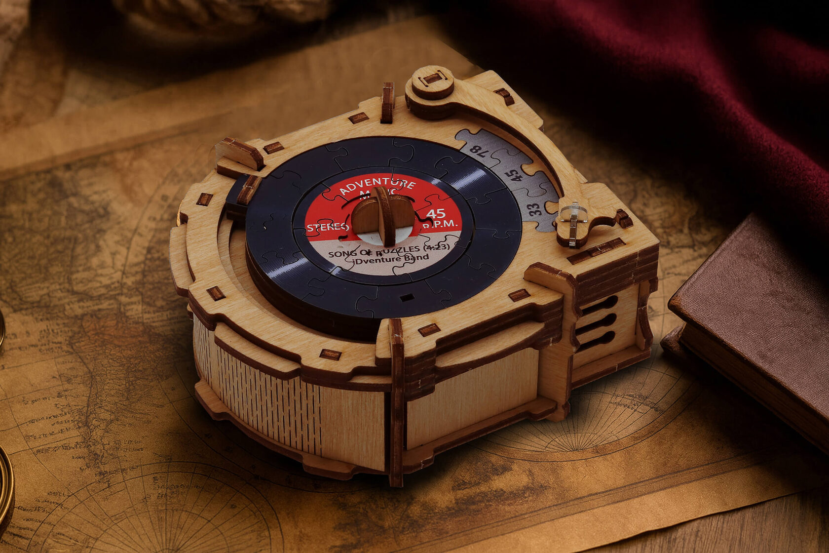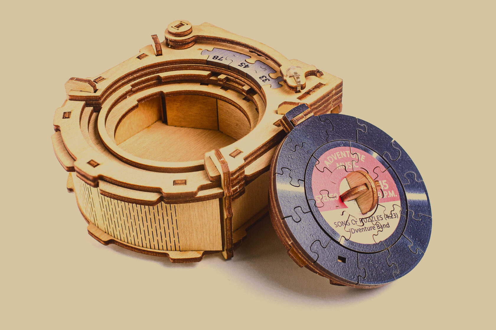 Винтажный дизайн головоломки в виде проигрывателя пластинок.