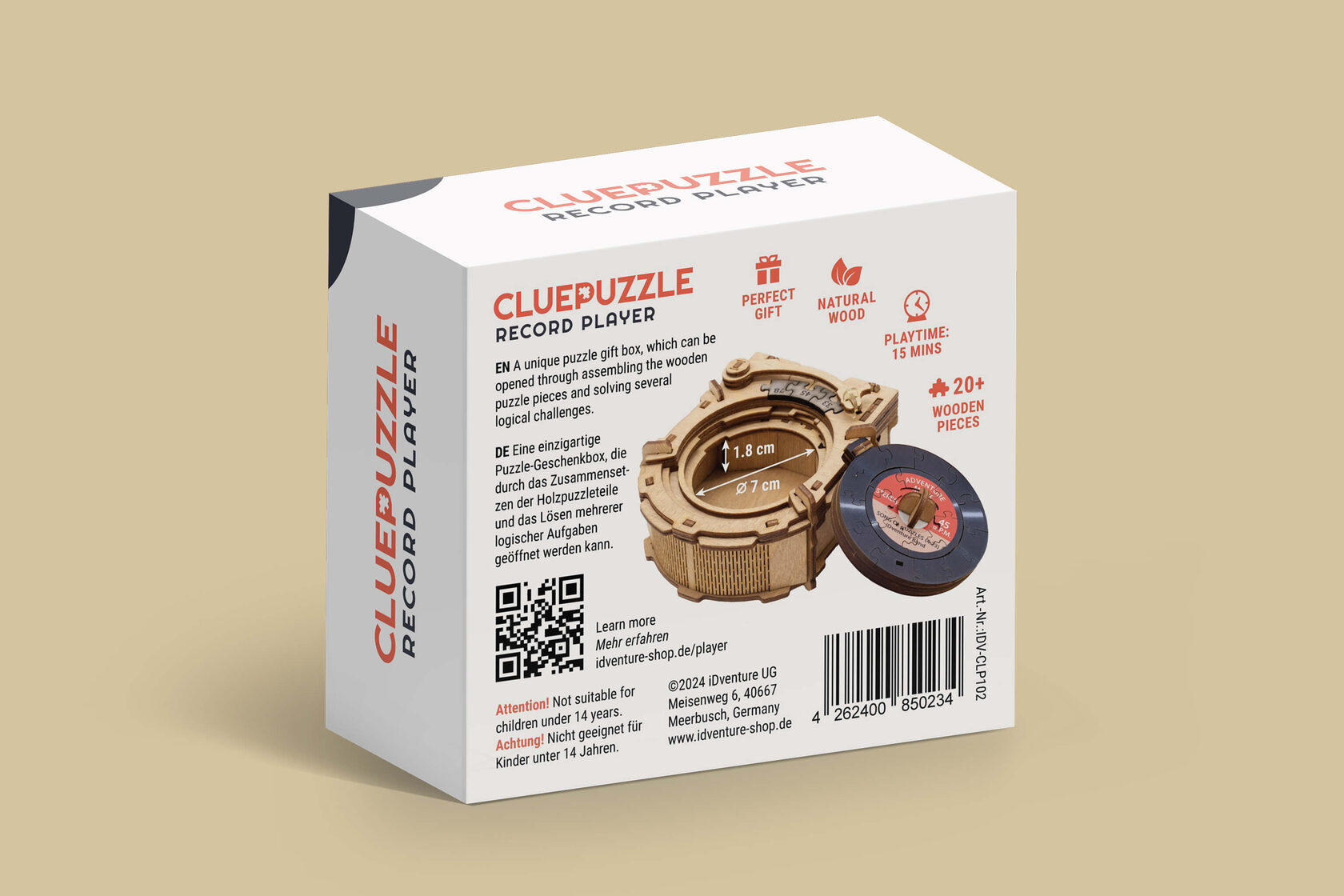 22 элемента пазла собираются на головоломке и образуют форму виниловой пластинки в собранном виде.