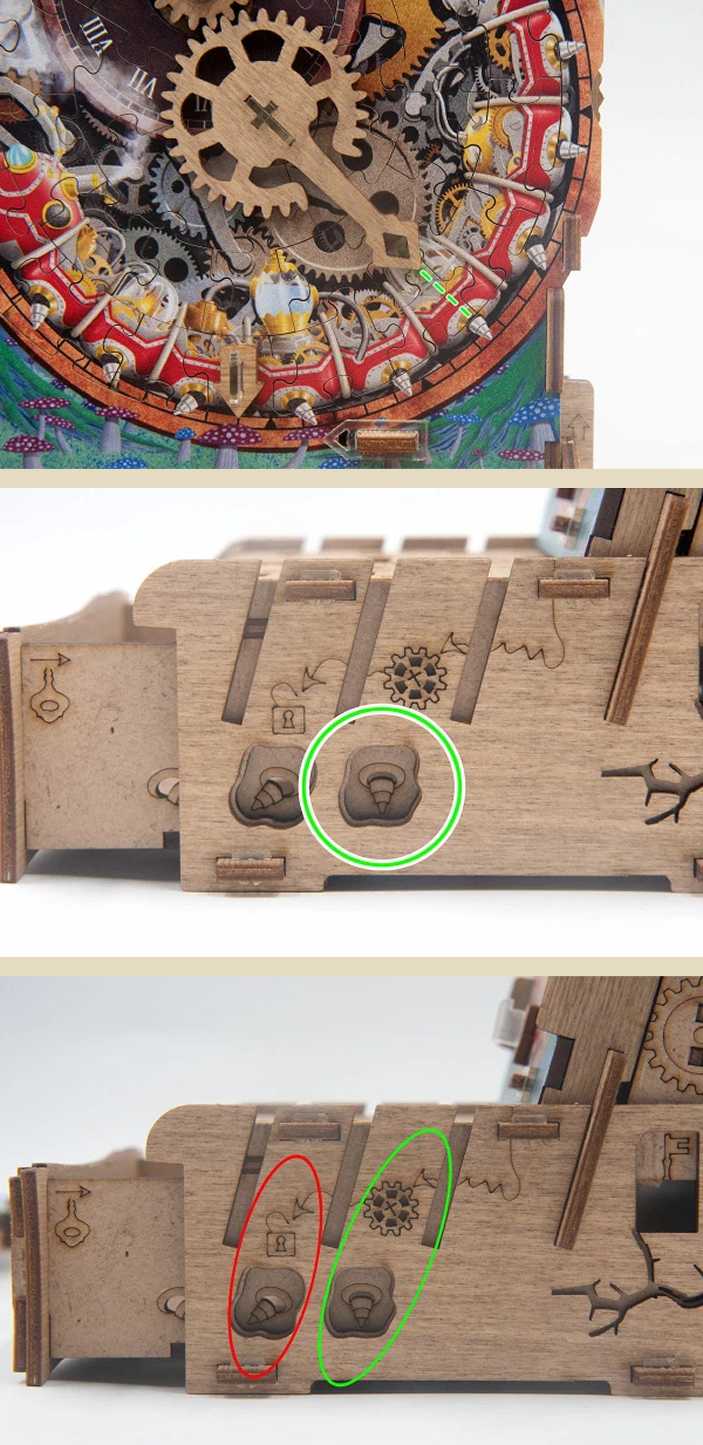 3. Поверните ручку против часовой стрелки, пока рука Алисы не укажет на карту бубны (♦).