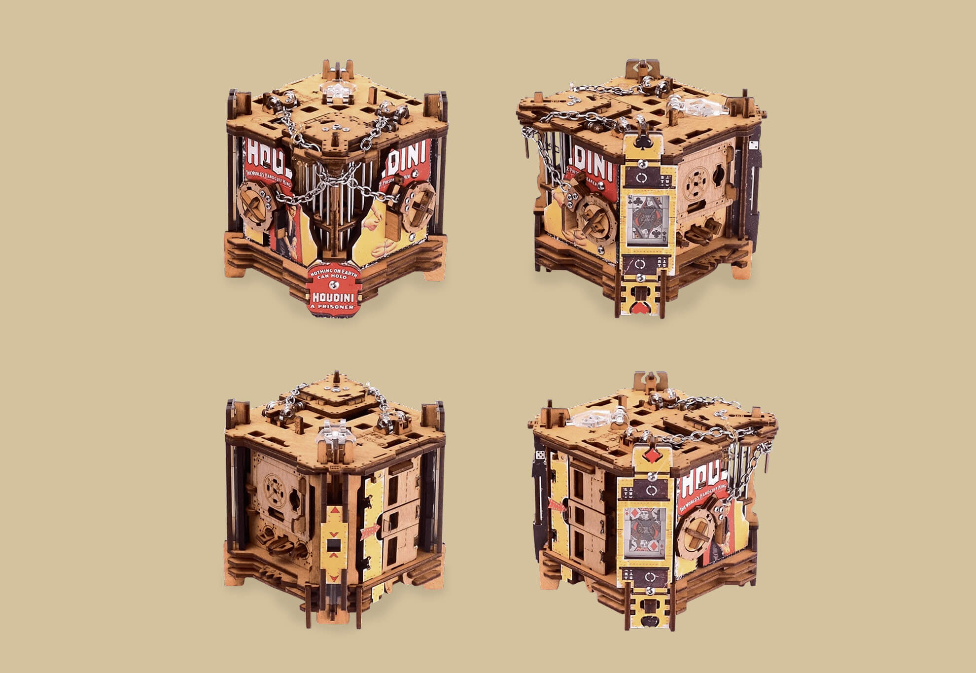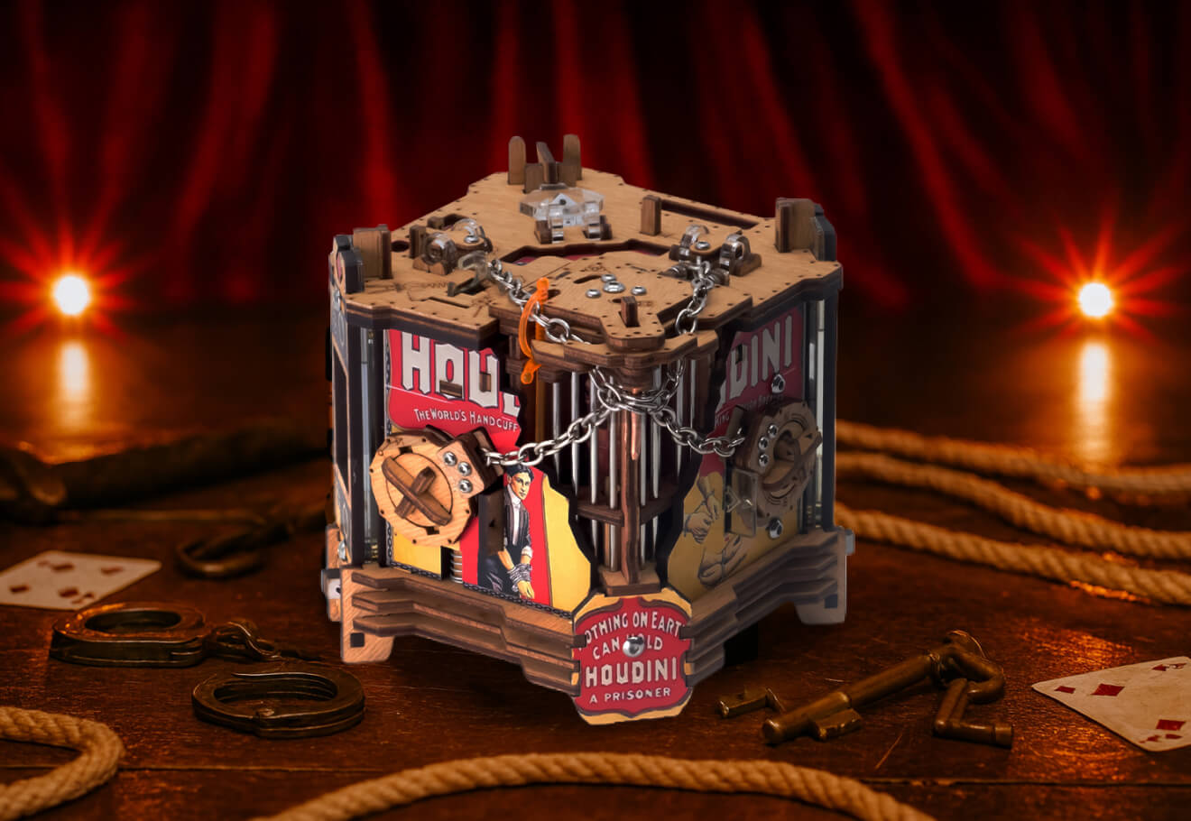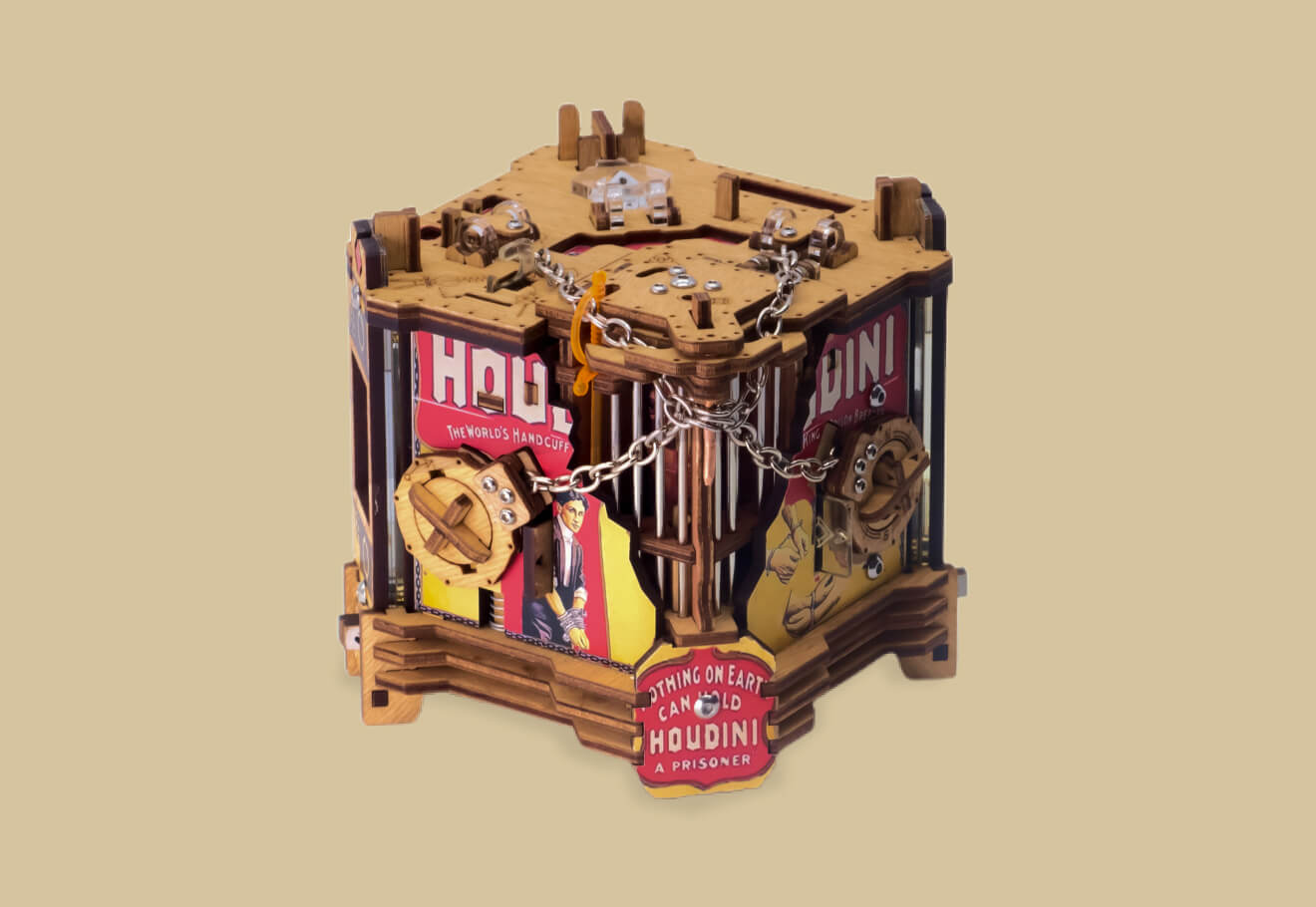 Деревянная головоломка Квестбокс «Магия исчезновения Гудини» изготовлена из натурального дерева. Мы покрываем изделие экологичной масляно-восковой пропиткой для долговечности и защиты от влаги. Она обеспечивает влагостойкий барьер и дарит поверхности шелковистый блеск.