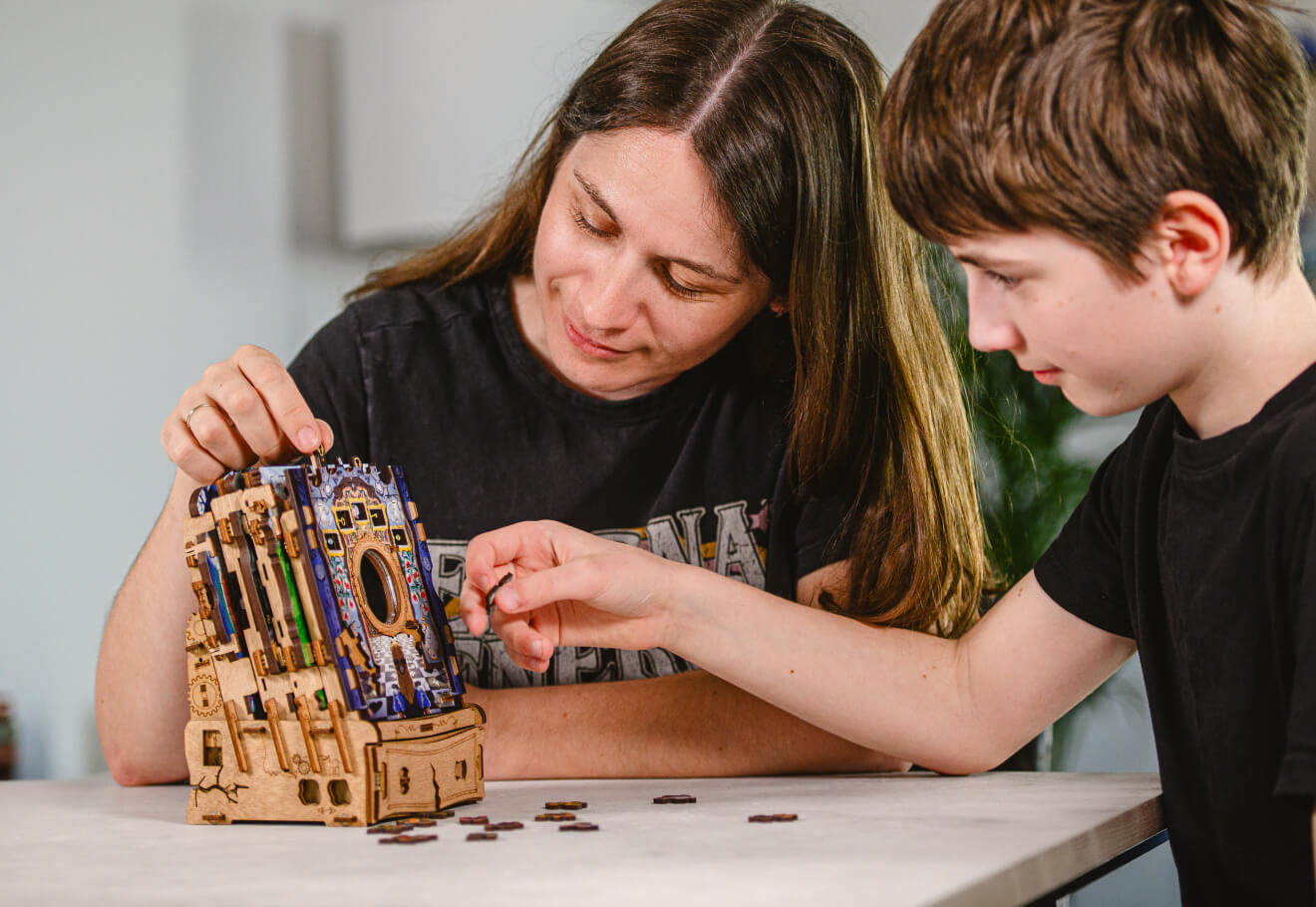 Деревянная головоломка «Квестбокс: Алиса в Стране Чудес» — новинка 2026 года. Уникальный формат этой модели заключается в том, что вначале игрок собирает пазлы, а потом разгадывает механические загадки. У головоломки высокий уровнь сложности, а еще в неё можно играть вдвоем. Внутри есть тайник, куда при желании можно вложить небольшой дополнительный подарок для именинника или близкого человека. Головоломка поставляется в красивой подарочной упаковке, что делает «Квестбокс: Алиса в Стране Чудес» готовым и эффектным сюрпризом.