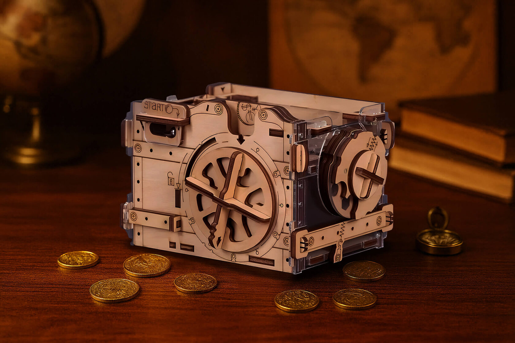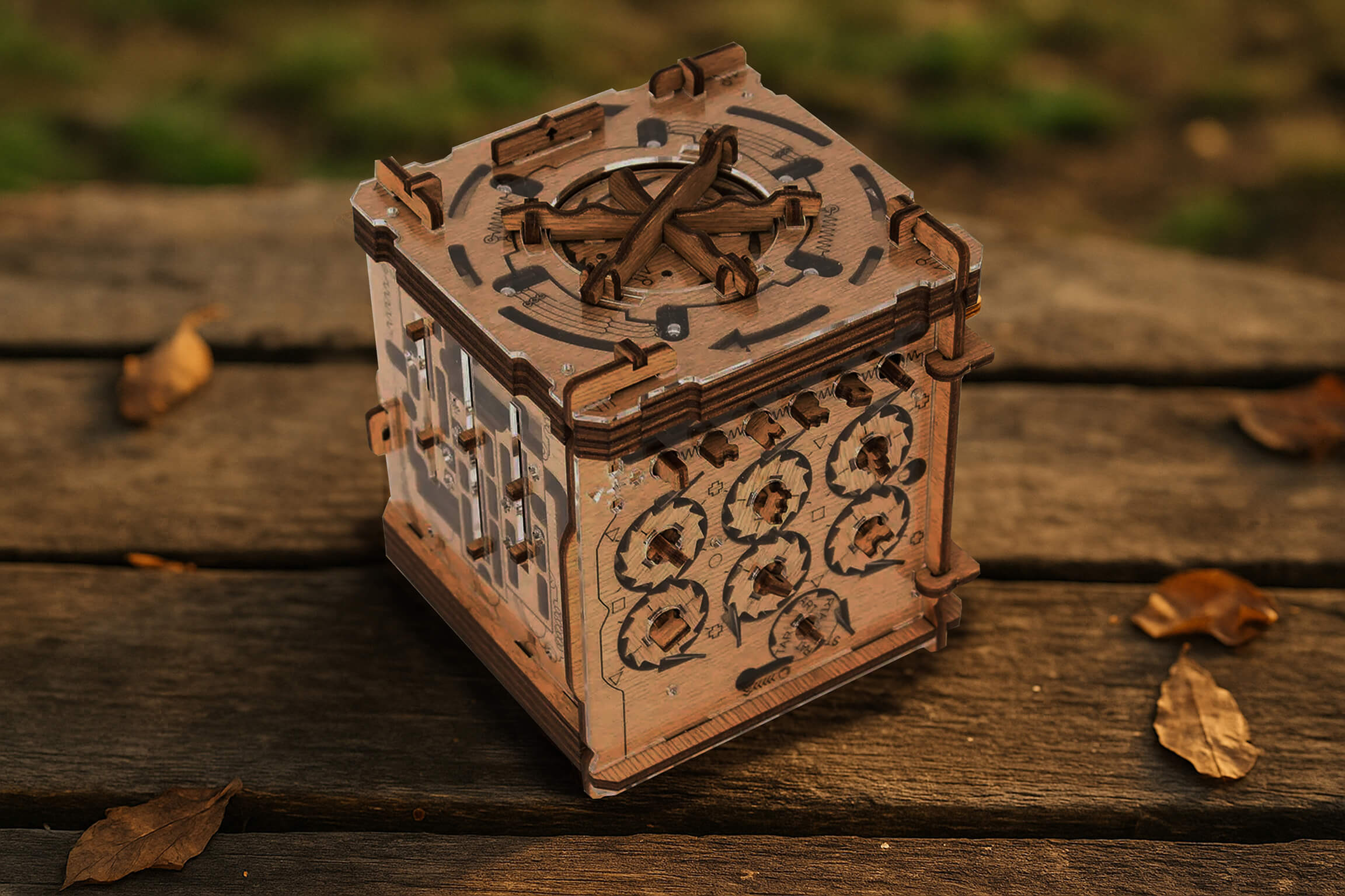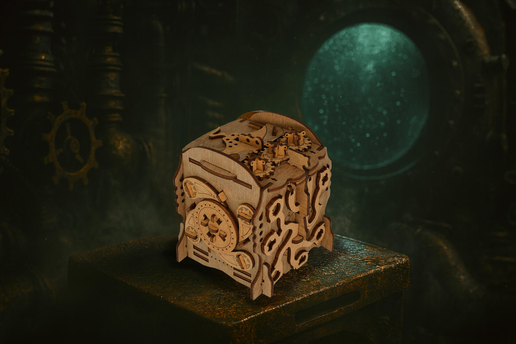 ДЕРЕВЯННАЯ ГОЛОВОЛОМКА «КВЕСТБОКС: НАУТИЛУС» — её точно оценят любители научной фантастики. Внутри сложные механизмы с пятью загадками и скрытый тайник. В подарок мы положили модель «Подлодка». Седьмой уровень сложности.