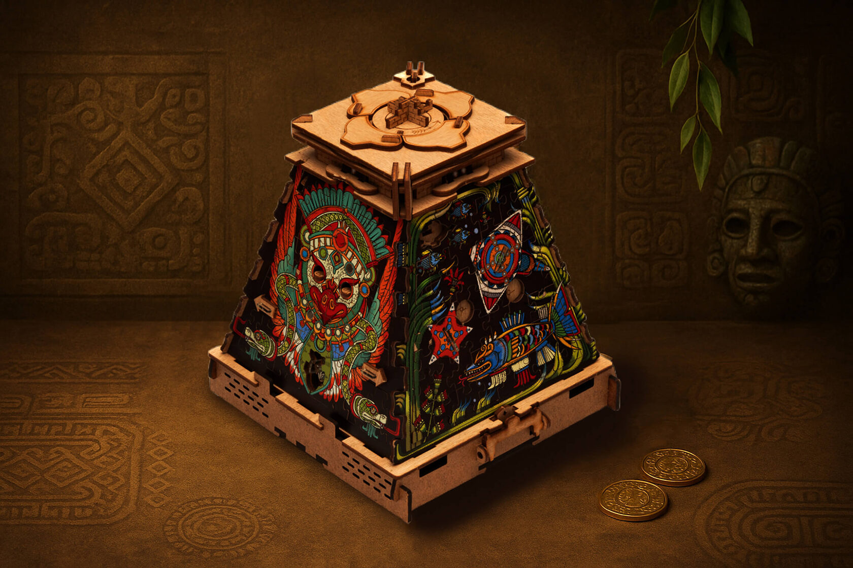 ДЕРЕВЯННАЯ ГОЛОВОЛОМКА «КВЕСТБОКС: ПИРАМИДА СОЛНЦА» — новинка 2025 года и самая большая деревянная головоломка на сегодняшний день в нашем каталоге! В начале нужно собрать красочные пазлы на стенках квестбокса, затем пройти логические испытания и открыть тайник. Подходит для всей семьи. Седьмой уровень сложности.