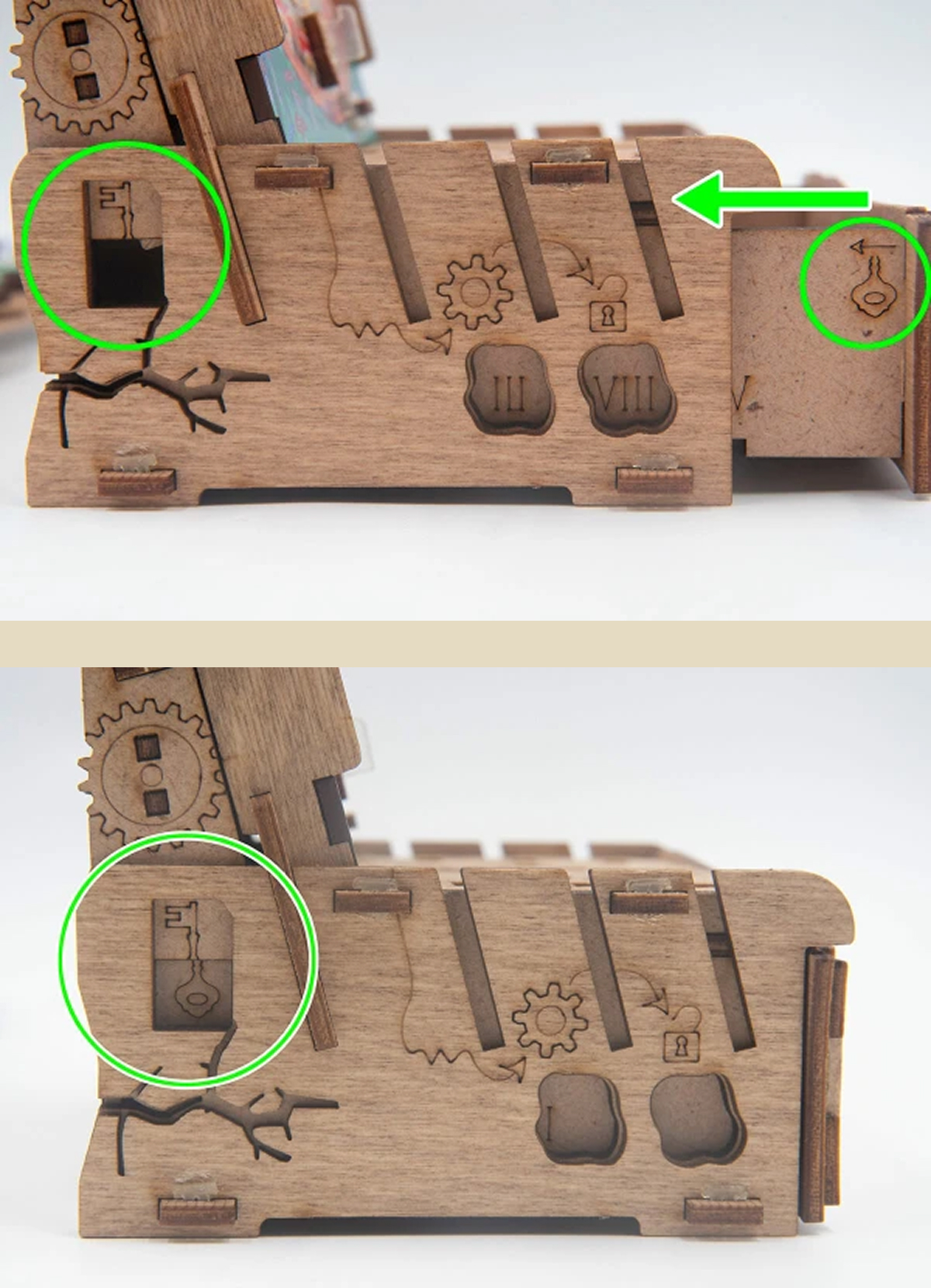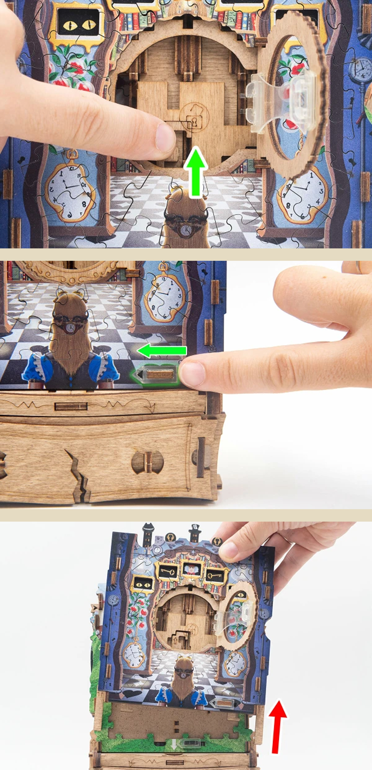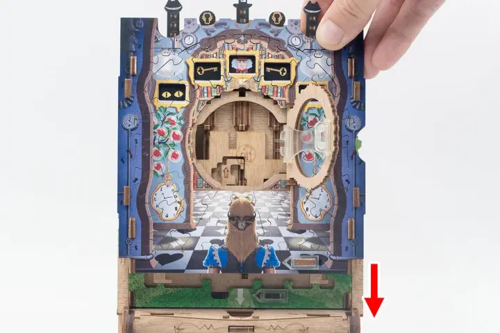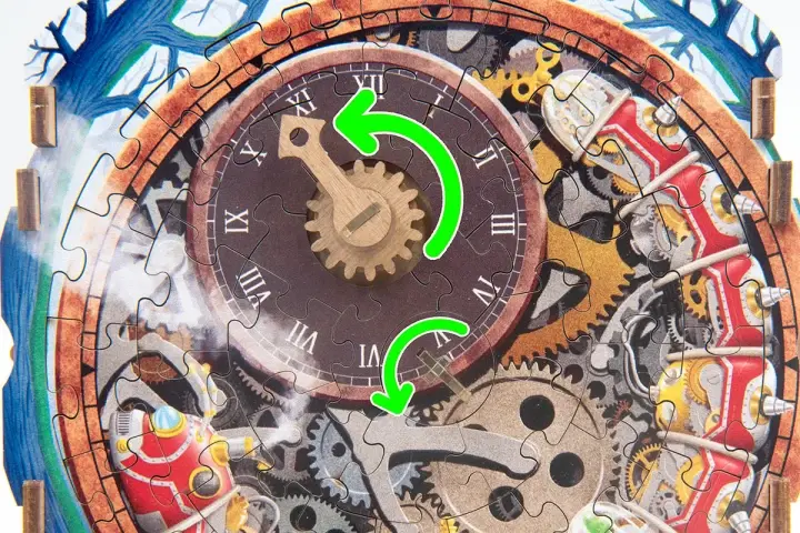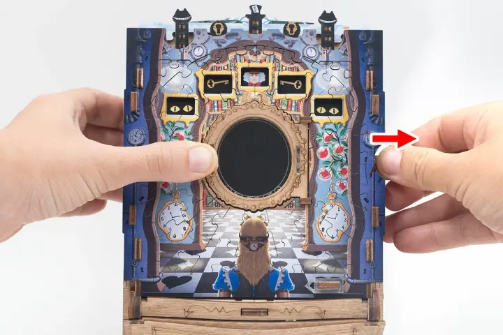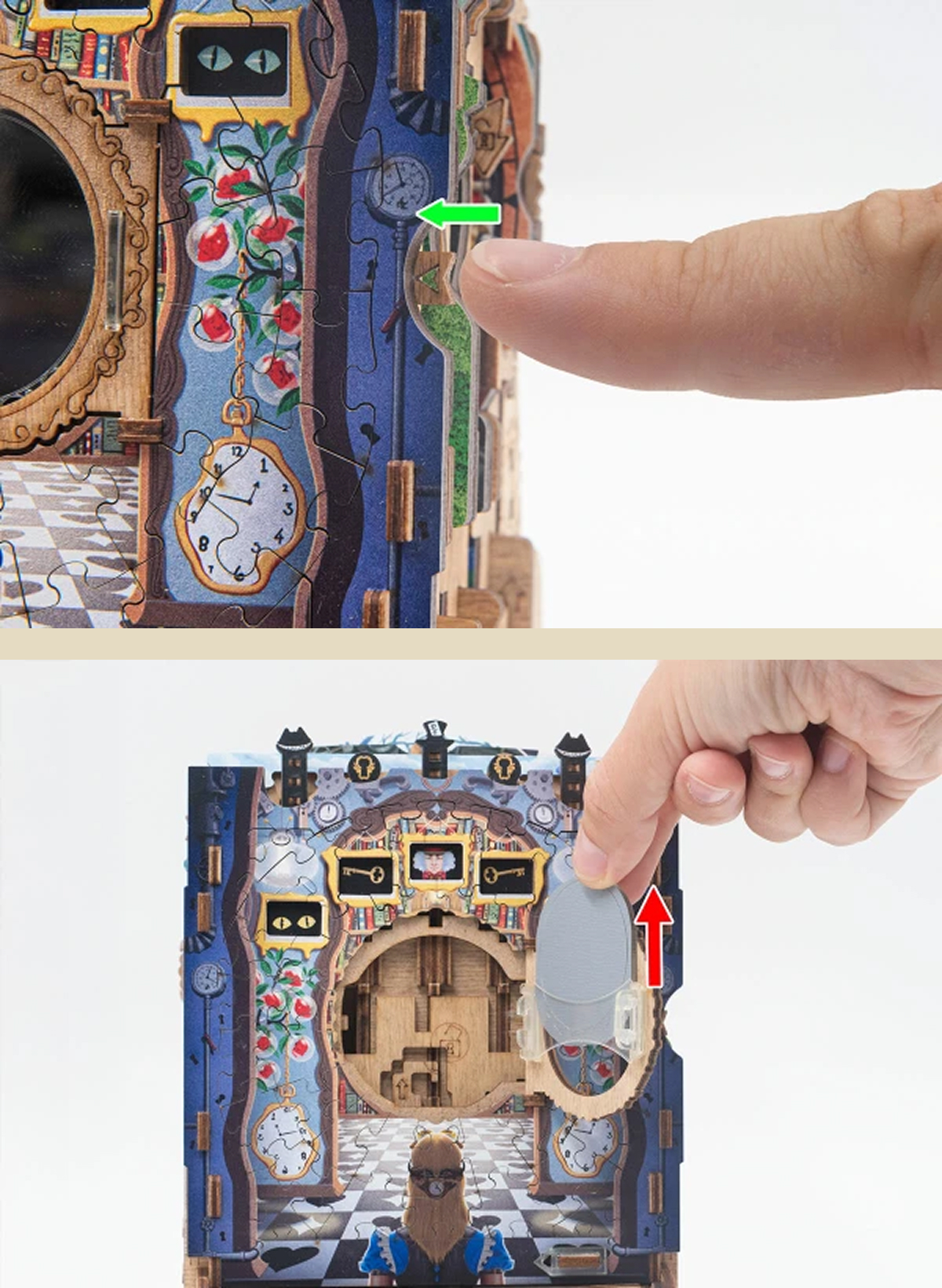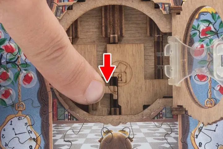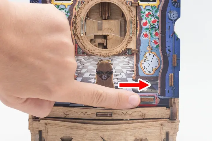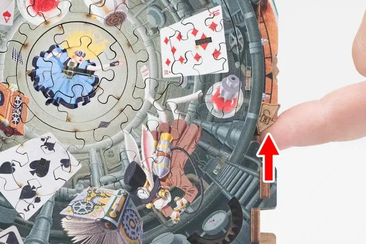3. Поверните ручку против часовой стрелки, пока рука Алисы не укажет на карту бубны (♦).