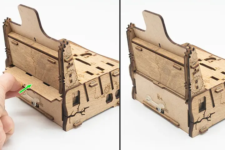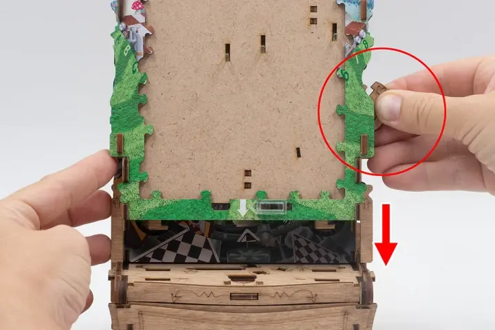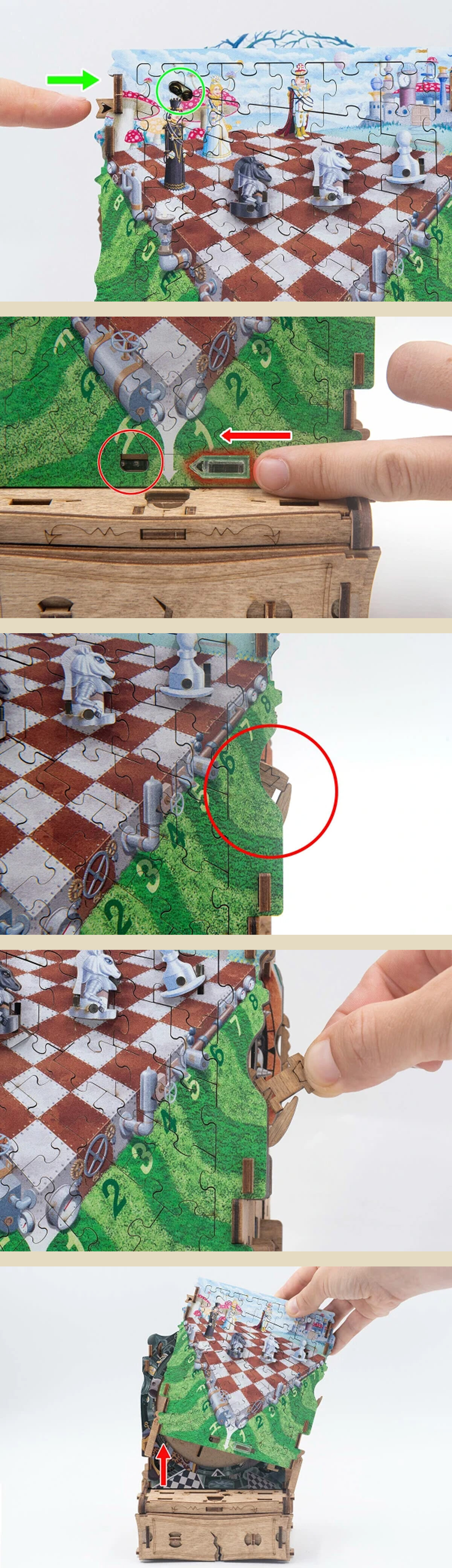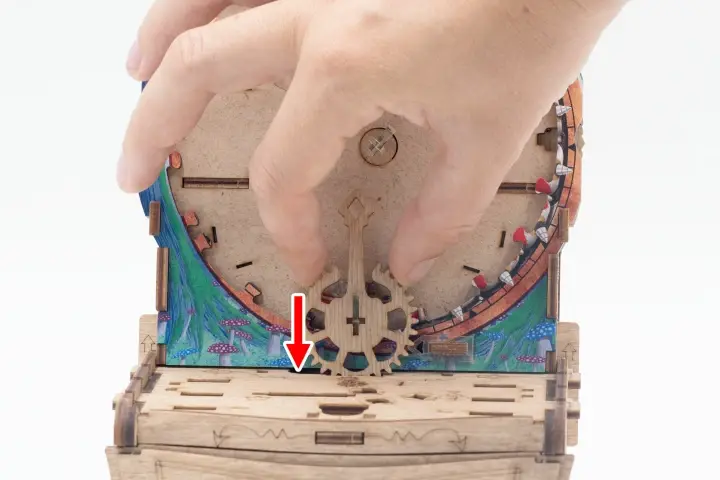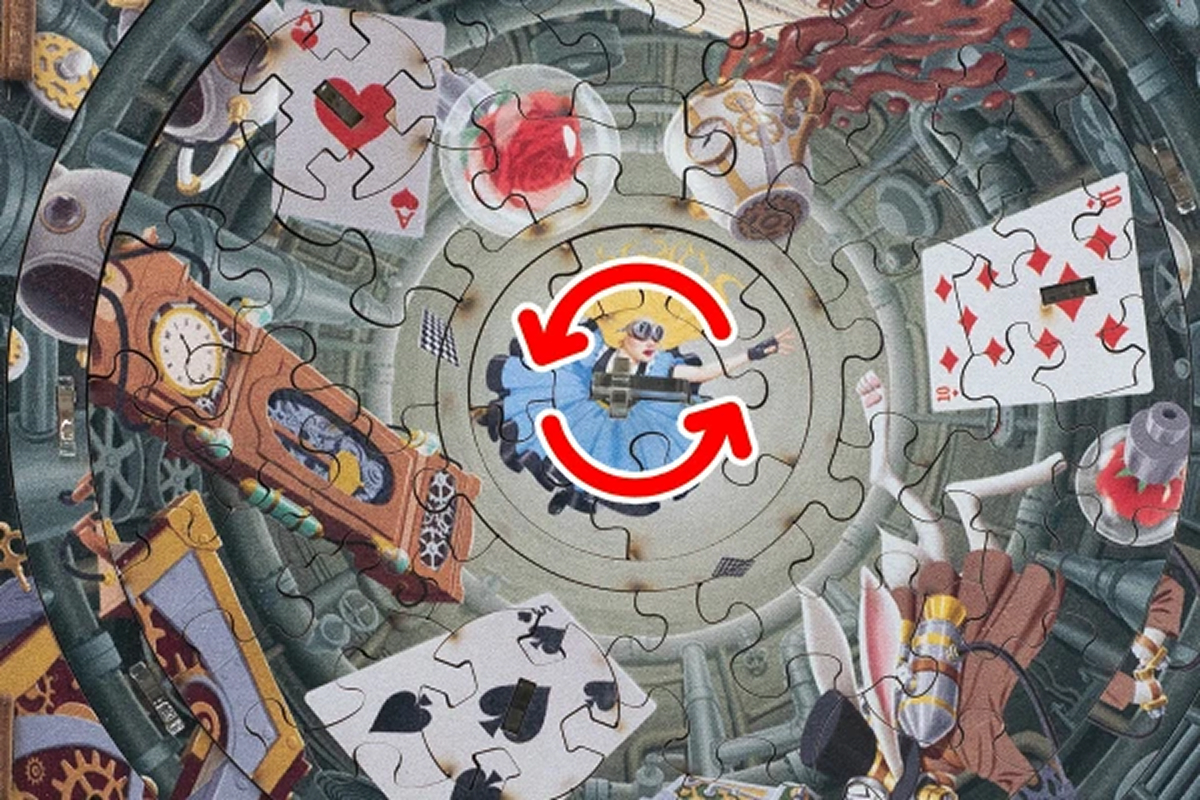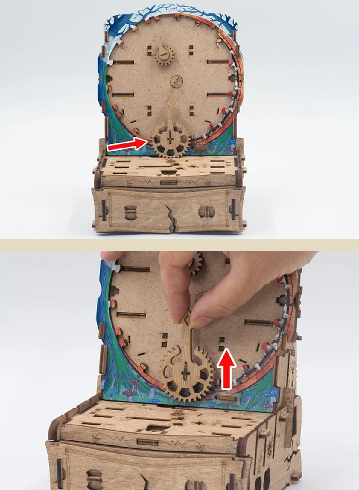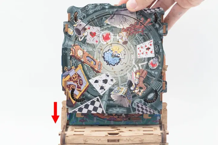 2. Поверните ручку по часовой стрелке, пока рука Алисы не укажет на карту пик (♠).