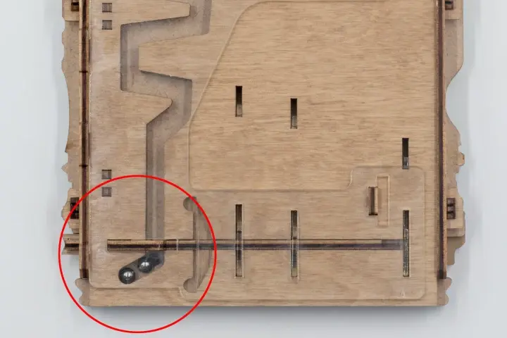 4. В верхней части уровня находится булавка с символом креста (♣). Нажмите и удерживайте эту булавку, а затем, удерживая ее, нажмите вниз рычаг в форме стрелки справа.