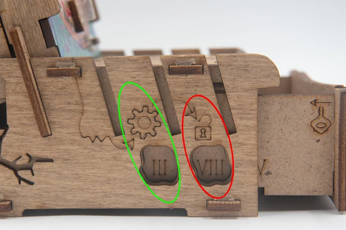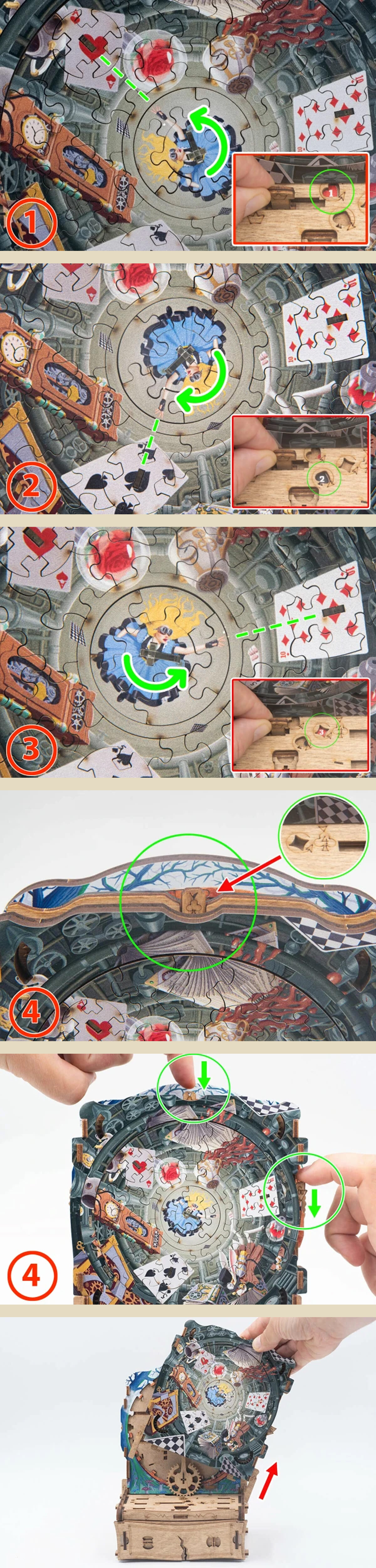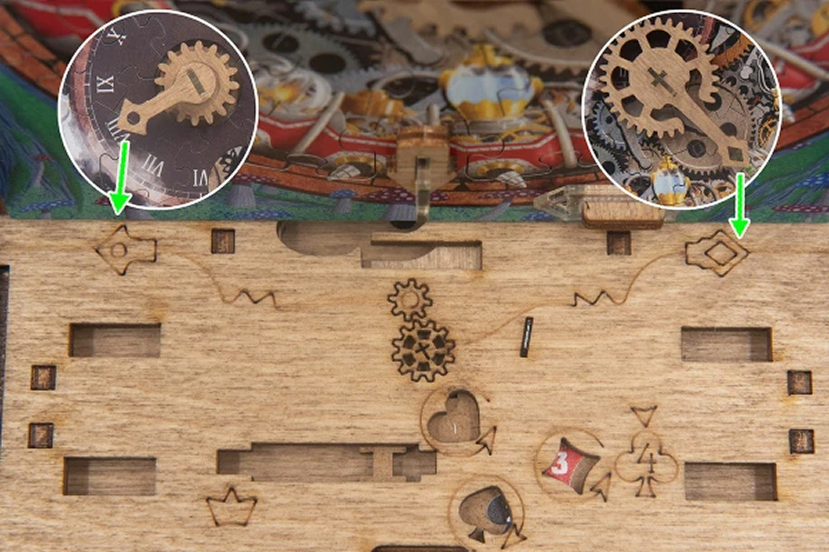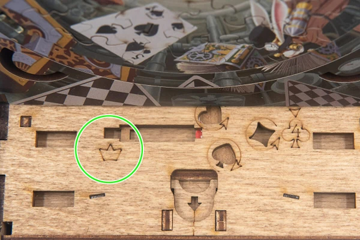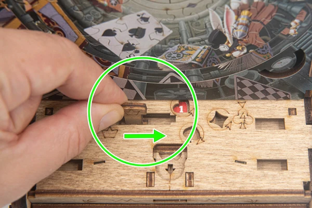 1. Поверните ручку против часовой стрелки, пока рука Алисы не укажет на карту сердца (♥).